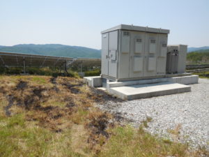 2017年6月上旬の夕方、ある特別高圧の太陽光発電所にて。落雷により発電所構内外の火災が発生しました。